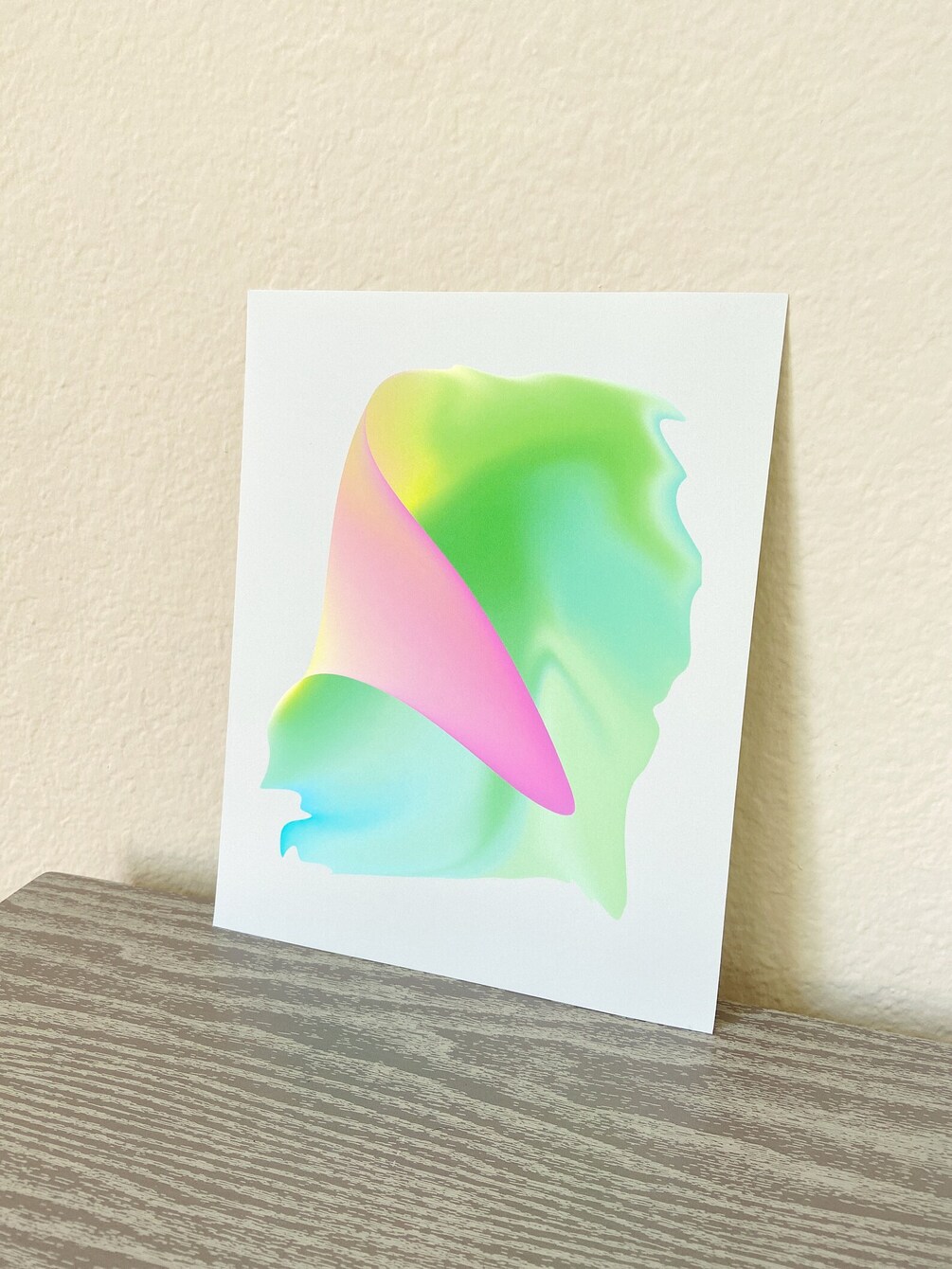 abstract illustration of a living/breathing non-corporeal paper-like entity made of neon gradients